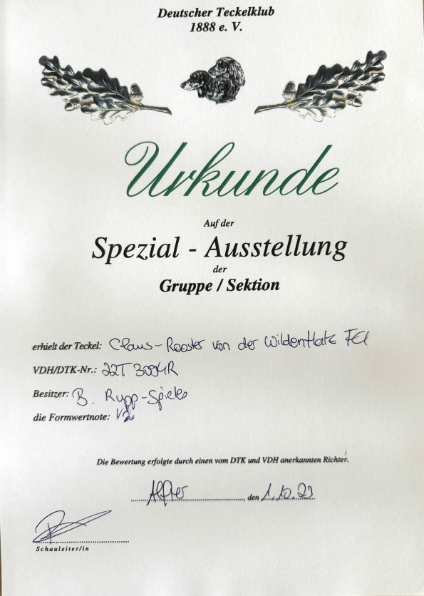 DAM: Walküre von der Bismarck-Eike: WUT-WorkCh 2020, I-ACh2022, BhFK/95/J, BhN(F), BhN(W), ESw/J, SauN, SchwhK/J, SchwhK, SchwhK/40/J, SchwhK/40, SchwhKF/J, SfK, Sp, StiJ, VpoSp/J, IntVp/J., Wa.T