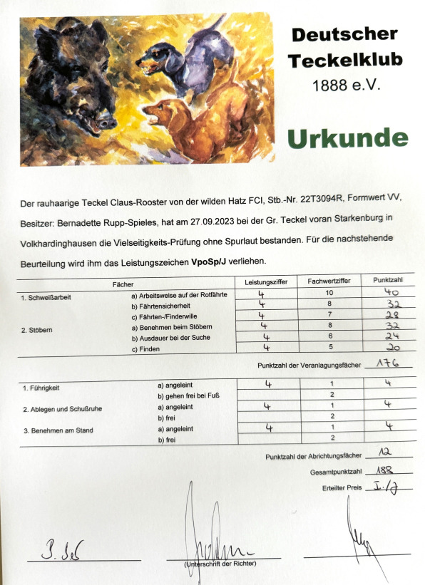 Claus was imported from Germany in February 2024 after he completed his International Versatile Hunting test (Vp) at