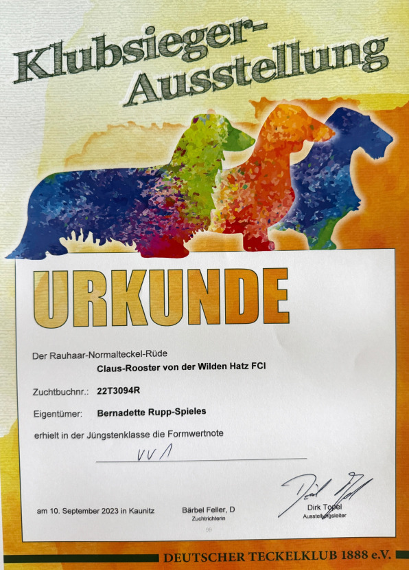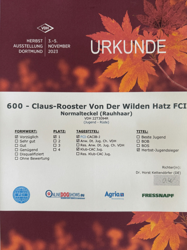DAM: Walküre von der Bismarck-Eike: WUT-WorkCh 2020, I-ACh2022, BhFK/95/J, BhN(F), BhN(W), ESw/J, SauN, SchwhK/J, SchwhK, SchwhK/40/J, SchwhK/40, SchwhKF/J, SfK, Sp, StiJ, VpoSp/J, IntVp/J., Wa.T